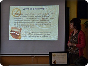 W ramach działań profilaktycznych uczniowie naszego gimnazjum uczestniczą w zajęciach na temat szkodliwości palenia papierosów, które prowadzi pedagog szkolny. Zajęcia profilaktyczno - wychowawcze wzbogacone są prezentacją multimedialną i filmem edukacyjnym pt.: "Palenie" z serii "Nie Zamykaj Oczu" .