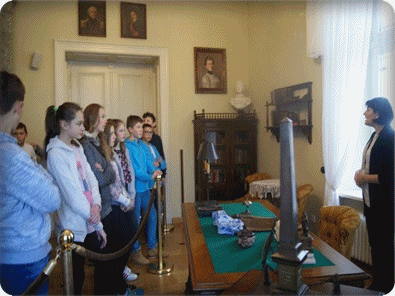 Obchody Roku Sienkiewiczowskiego to wspaniała okazja do uczczenia twórczości wielkiego noblisty. W związku ze 170 rocznicą urodzin znakomitego pisarza i publicysty, zorganizowano wyprawę do Pałacyku Sienkiewicza w Oblęgorku. Wycieczka do muzeum odbyła się 4 listopada 2016 r. Uczestniczyli w niej uczniowie klasy I B wraz z wychowawcą i bibliotekarzem. Młodzież przebywając we wnętrzach eklektycznego pałacu, będącego letnią rezydencją Sienkiewiczów w latach 1902 - 1914, miała możliwość obcowania z największymi zbiorami związanymi z życiem i twórczością pisarza. Duże wrażenie na uczniach zrobiło oryginalne wyposażenie pomieszczeń . Zabytkowe meble, piękne tkaniny, wartościowe obrazy i rzeźby, a także część księgozbioru noblisty na długo pozostaną w naszej pamięci. Uczniów zaciekawiła też nowoczesna forma ekspozycji zbiorów rękopisów, listów, albumów, medali i pamiątek z podróży Sienkiewicza, którą urządzono na wyższej kondygnacji pałacyku.