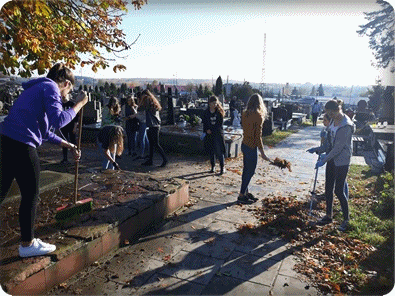 Klasa trzecie gimnazjum porządkowały pomnik przed świętem Wszystkich Świętych patrona szkoły - generała Kazimierza Tańskiego.